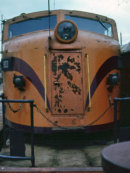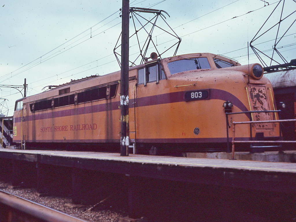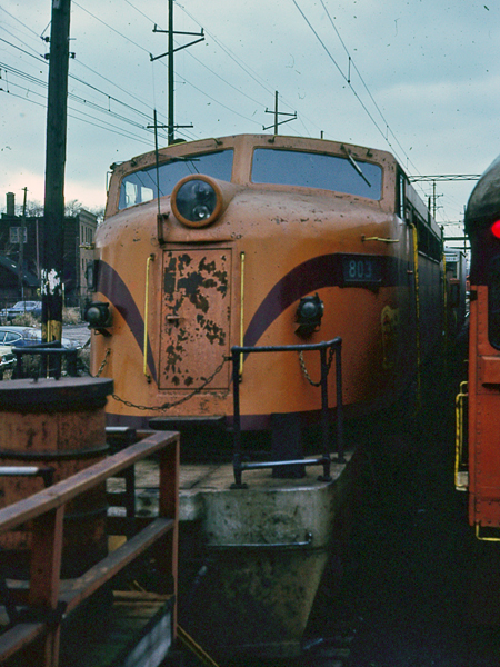 | On a trip from Findlay, OH to Chicago, Jan and I ran into "Little Joe" #803. We turned around in the hope of shooting it on the line with its train. However, instead, we got it in the ready track at the Gary, IN station, 11/24/78. |