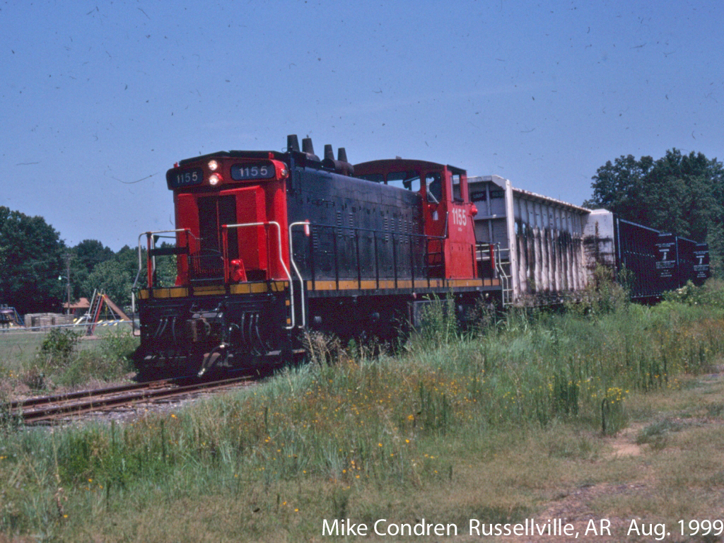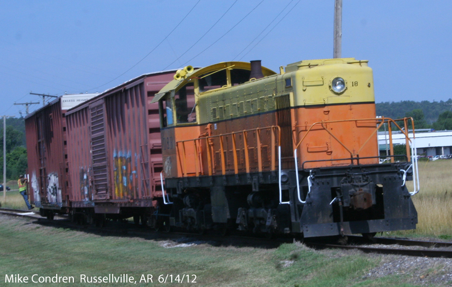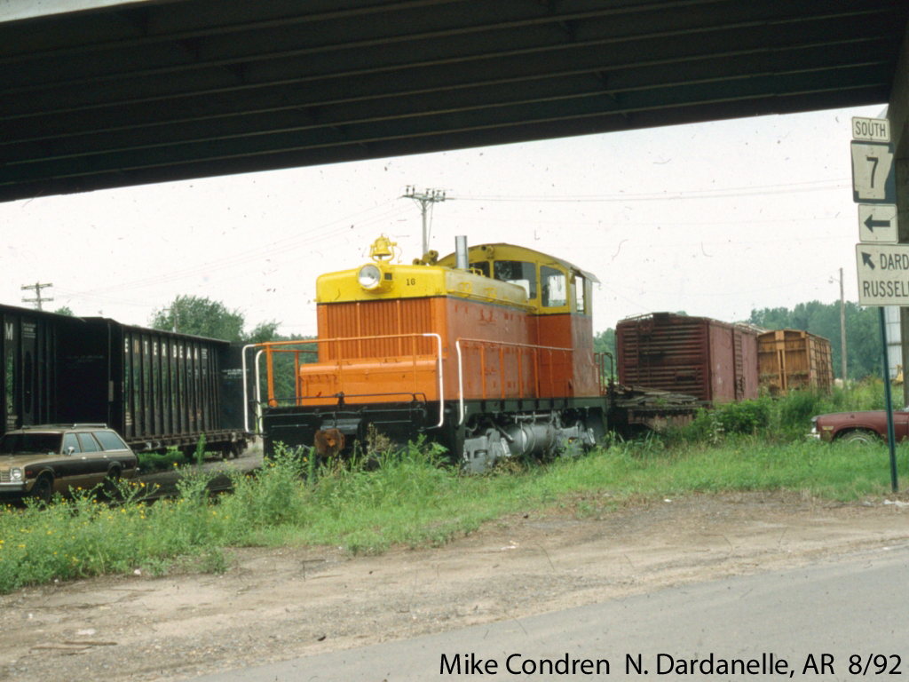 | GE 44ton #12 is seen working the yard at North Dardanelle on May 28, 1968 as the new Arkansas River biridge is being constructed. |