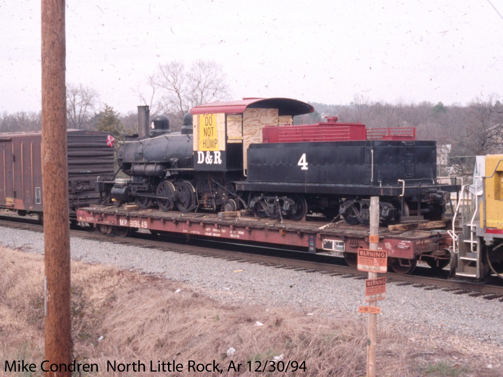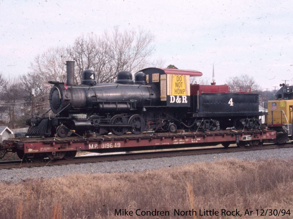 Plymouth Model XL, built 3-1929, S/N 3093 for RS&S, powered with 4 Mercury automobile engines under each end, rebuilt with Cummins diesels, October 1955. Seen below at North Dardanelle, AR on Jan. 27, 1963 |