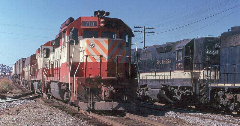 | SLSF EMD GP35 #710 is seen east bound at the IC crossing in Memphis |