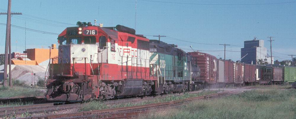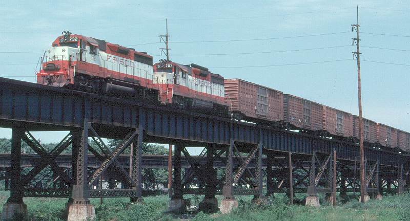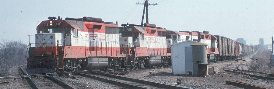 | SLSF EMD GP35 #716 is crossing the MoPac at Bridge Jct, AR as it leaves Memphis. |