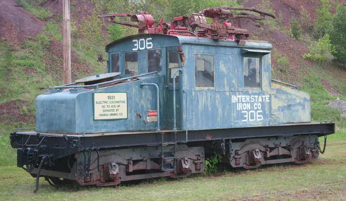 | One of the electric locomotives that once served the mine. |