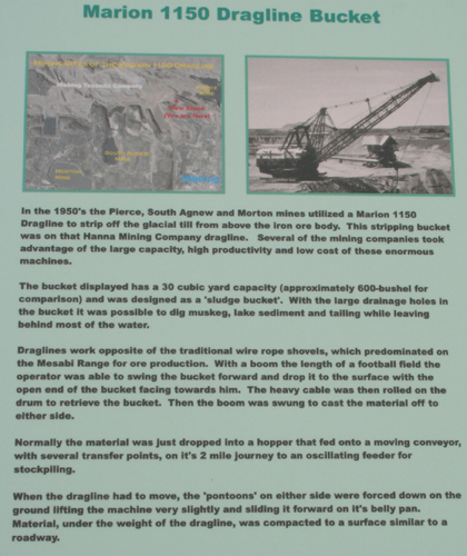 Views of the Hull- Rust-Mahooning open pit iron mine and equipment used in the mine, outside of Hibbing, MN. Large draglines were used to remove the overbarren. These draglines ran on "cat tracks" or moved with "feet" on the "walking " models. |