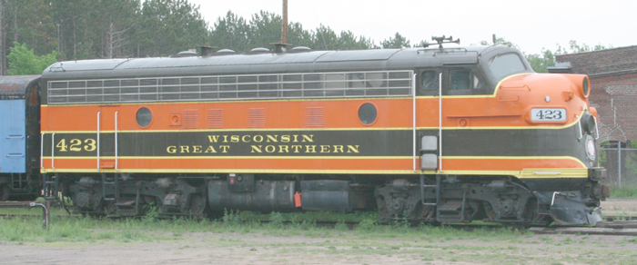 On our way to Superior, we discovered this restored F-unit in Spooner, WI, May 26, 2007. |