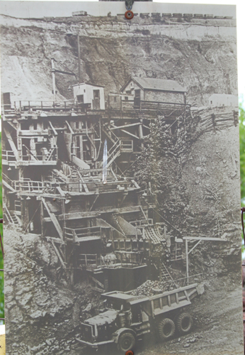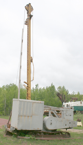 | This crusher in the bottom of the pit is now under 300 ft. of water. | This rock drill is used for placing the dynamite charges. |